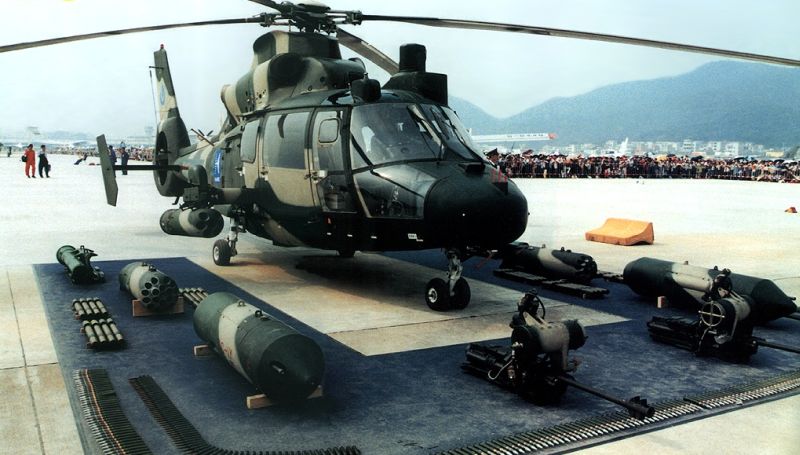 An attack helicopter variant has been fielded by the PLA since the early 1990s as the WZ-9 or Z-9W, with pylons fitted for anti-tank missiles. The latest armed version, the Z-9W, was introduced in 2005 and has night attack capabilities, with an under-nose low-light Television and infrared observing and tracking unit. Z-9W was China’s first anti-armor attack helicopter that turn into operational with PLA Army. It can be armed With HJ-8A wire-guided ATGMs, or 57mm/90mm rocket pods, or 23mm cannons, or TY-90 IR-guided AAMs.