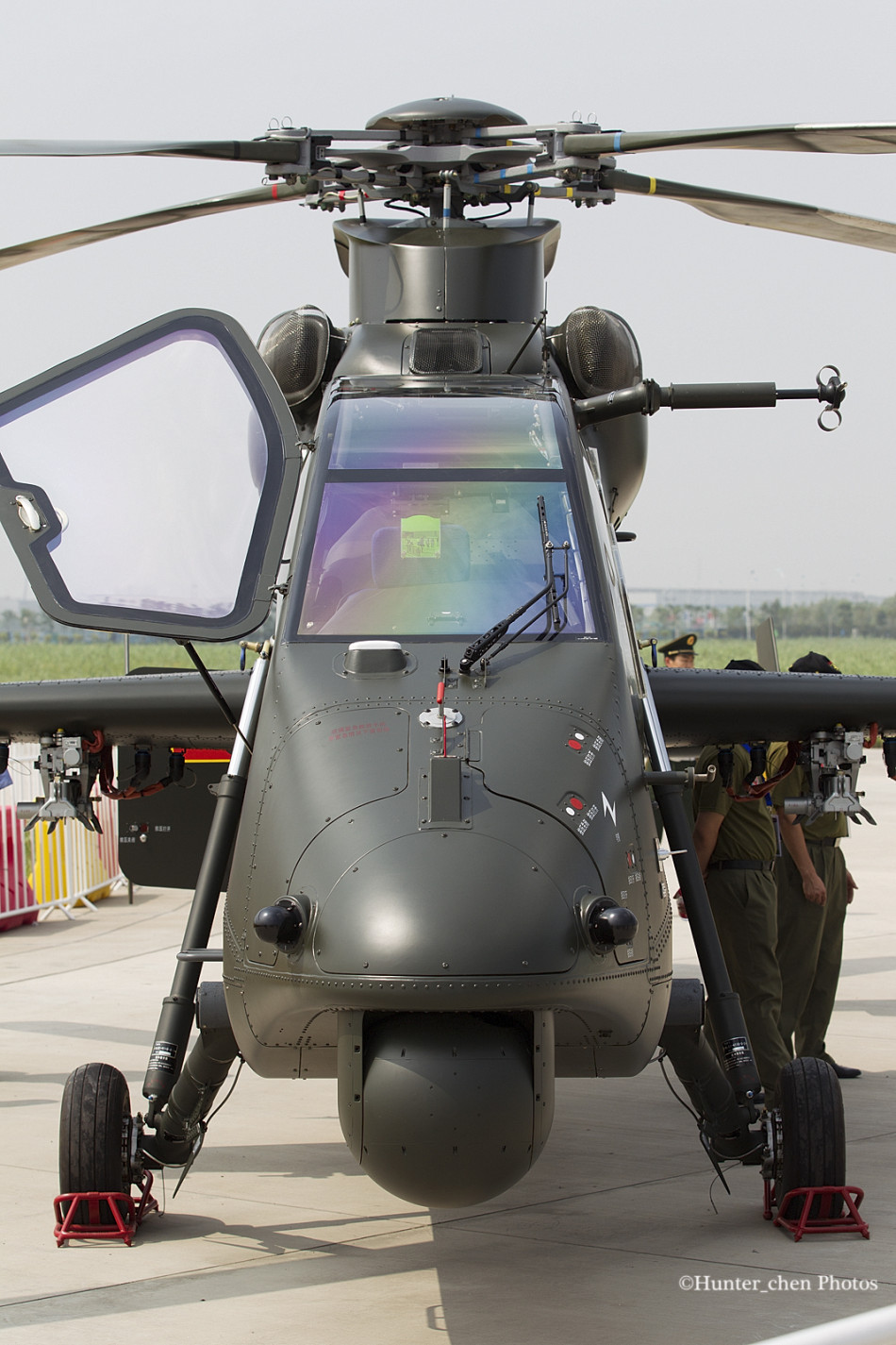 The WZ-19 used the engines (WoZhou WZ8A?), rotor, aft fuselage and tail section (including Fenestron tailrotor) with minor modifications from H425 [one of the recent upgraded variants of the Z-9] swhich speeds up the development. Unlike the the Z-9W, which was basically an wide-body armed utility helicopter, the WZ-19 features a new narrow forwarded fuselage with tandem compact layout similar to that of the other gunship helicopters like Z-10, TAI/Agusta Westland T-129, AH-1Z Viper, AH-64 Apache, Eurocopter Tiger, Mil Mi-28 and HAL Light Combat Helicopter.