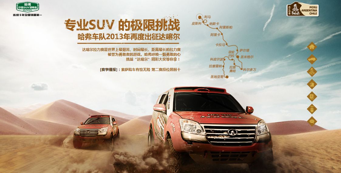 After making its debut in 2010, and achieving the best results among Chinese teams in 2011 and 2012, the HAVAL Dakar team is the only Chinese team to appear at Dakar 2013.