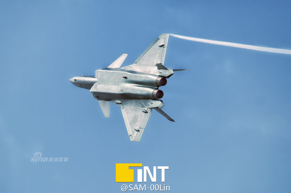 上面这幅动图是在高原地区施工的中方人员拍摄到的一段小视频,歼-20战机似乎正在准备降落,因此飞行高度很低,几乎是擦着视频拍摄者的头顶飞过。当歼-20接近的时候,巨大机翼和宽大机体犹如展开翅膀的大鹏,稳健而利落。从背景中并没有看到俄式发动机通常出现的拉黑烟的情形,再结合最近歼-20换装国产涡扇发动机的消息来看,视频中这架歼-20很有可能使用的是国产航空发动机–涡扇-10B,如果真是如此的话,那么这次高原试飞可谓意义重大。