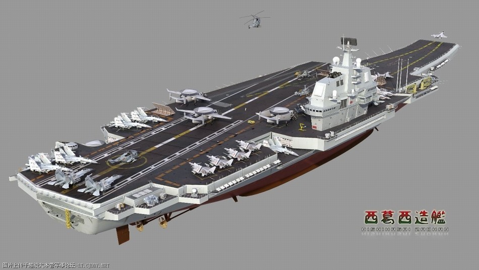 环球网报道 随着中国首个国产航母模拟分段的曝光,中国航母这一话题再次被推到舆论的风口浪尖。有媒体称,中国的首艘国产航母将以辽宁舰为基础研制,其最终形态可能与前苏联设计的乌里扬诺夫斯克号核动力航母相似。(网友 西葛西造舰 制图)