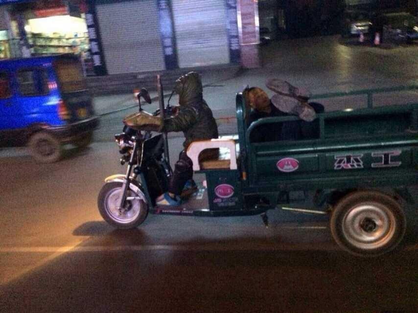 Recently, a man in the north of Guangxi Yizhou drinking until late at night, drunk unconscious, his seven year old son wearing cotton trailer, drove three came to be shipped home, back and forth more than 20 km, skilled calm expression.