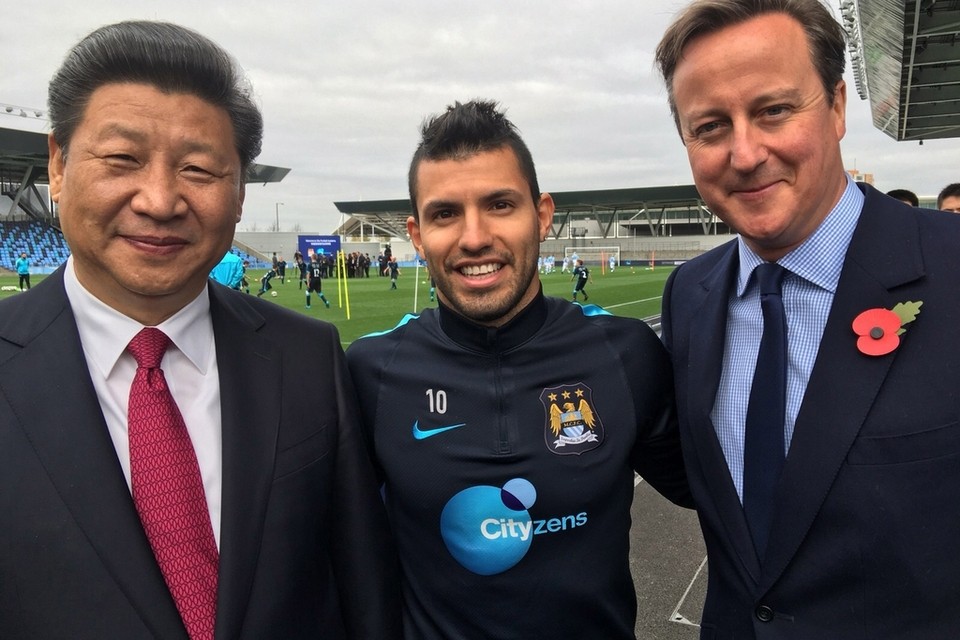 Man City striker Sergio Aguero scores selfie with China’s Xi Jinping and UK’s David Cameron