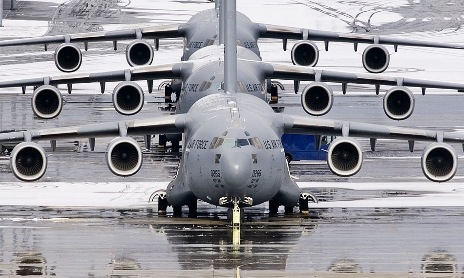 美国空军C-17战略运输机列队行进与飞行照
