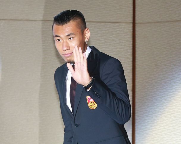 8月29日,中国男足官方合作伙伴发布会,邵佳一张呈栋领衔出席身着国足新西装